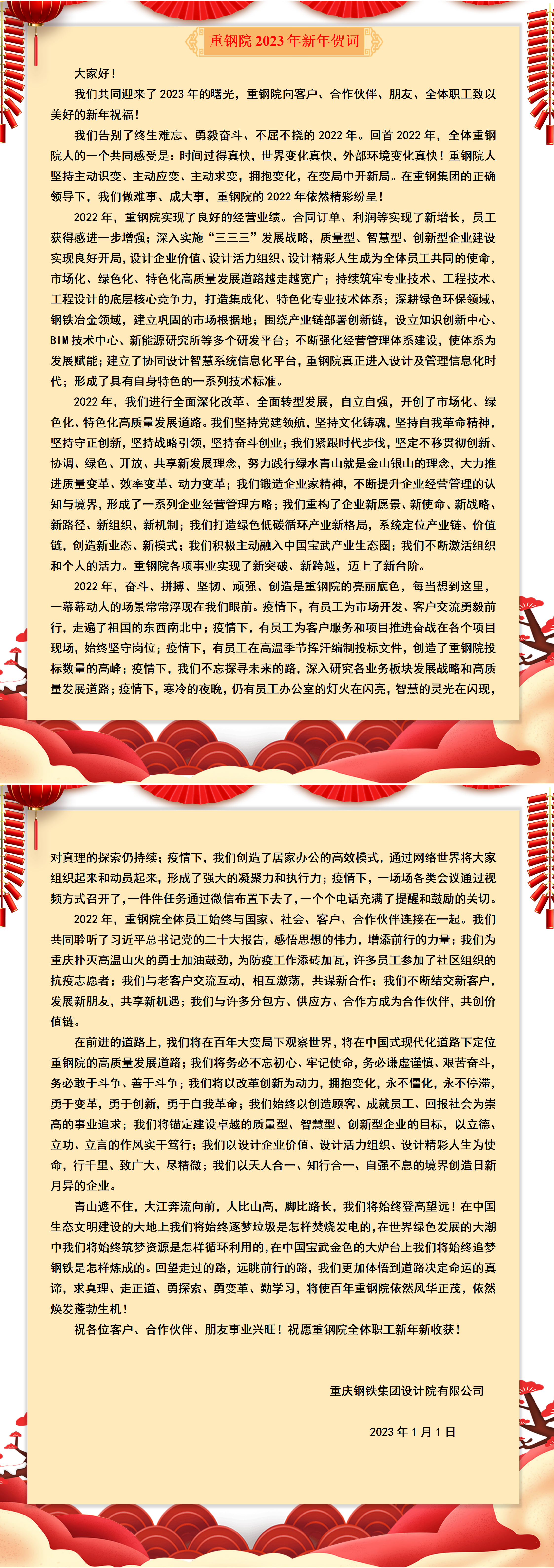 重鋼院2023年新年賀詞