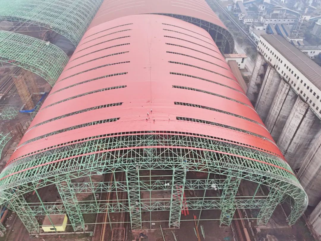3月31日,由重鋼院牽頭總包的重慶鋼鐵綜合原料場封閉改造項目進入收官掃尾階段,將進行工程預驗收。走進項目現場可以看到,深紅色的大棚建筑規模宏大,在廠區內格外亮眼。