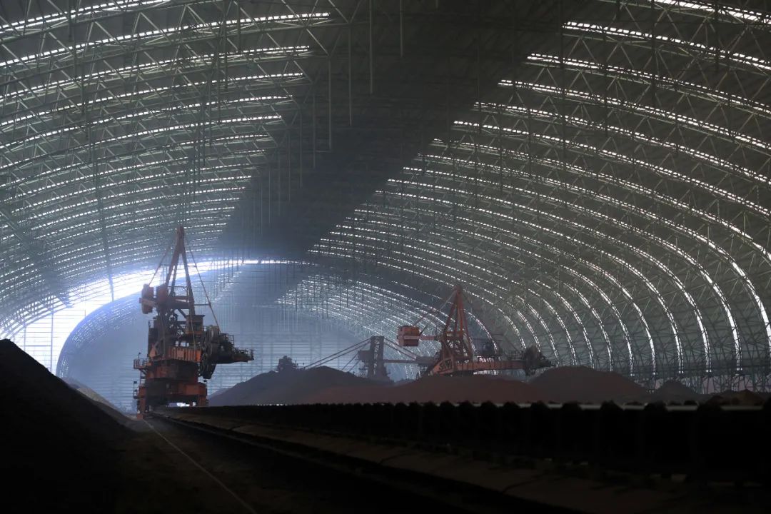 其頂部設計精妙地兼顧了透光性與密封性,不僅保證了自然采光,降低照明能耗,還可防止礦石因雨水沖刷造成資源流失。此外,大棚全封閉式設計搭配高效除塵系統和自動化噴淋裝置,可大幅抑制礦石堆存過程中產生的粉塵,極大降低對周邊環境污染。